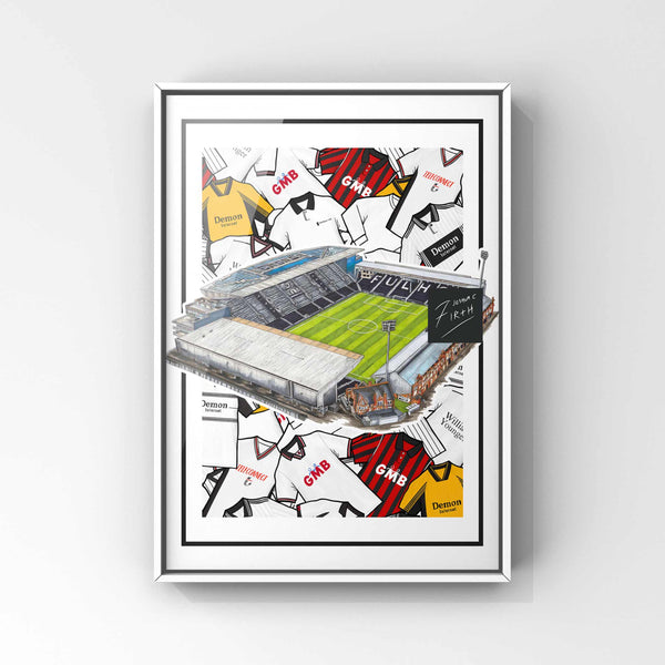 Fulham Kit Collage Retro Shirts & Stadium Football Print